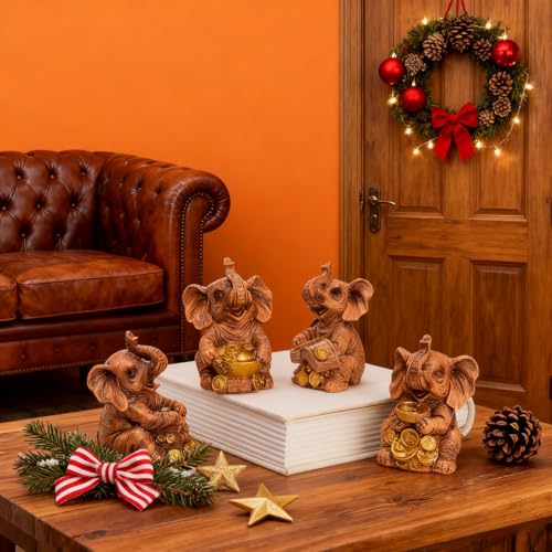 Click for More Images Value Pack: You will receive 4 pack elephant statues for home decor, enough quantity for meeting your daily use. Each statue has different look but similar size, which is about 2.5"L x 3"W x 4"H inches. A suitable size for a...