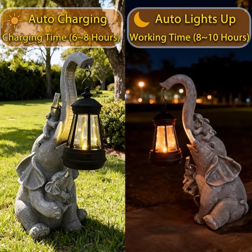 Click for More Images ? Effortless Solar Operation: Simply switch to 'ON'! Place this elephant statue in direct sunlight for 6-8 hours. The integrated solar panel automatically charges by day and provides 8-10 hours of enchanting ambient light at...