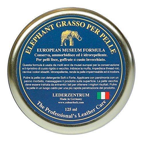 Colourlock elephant leather preserver is a purely synthetic, acid free leather wax and an ideal treatment for antique leathers, shiny leathers like chesterfield sofas and in classic cars. It can also be used on leather handbags. It refreshes and waterproofs the leather and prevents mildew growth. Highly effective for the care of genuine “pull up” furniture leather (oily leather). Ideal treatment for old, dry and cracked leather. Always test any products first in a hidden area for changes or color correctness. Rub some fat into a clean, soft piece of cloth and use this to apply the fat to the leather and if applicable, to polish it afterwards. The fat is not easy to process at cold temperatures, so be sure to work at least at room temperature or warm the fat up slightly with a hair dryer. For best results, clean leather with colourlock mild or strong leather cleaner before application. As featured on discovery channel’s ‘fast and loud’.