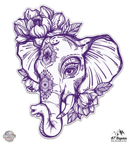Home » Automotive » Elephant Henna Purple – 8″ Vinyl Sticker – For Car Laptop I-Pad – Waterproof Decal