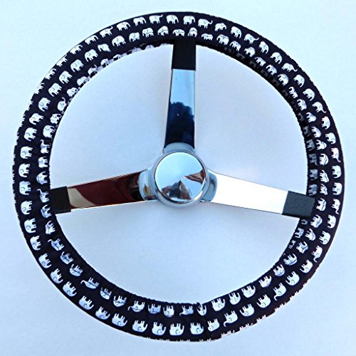 Mana Trading Handmade Steering Wheel Cover Elephants Black and White