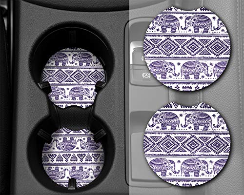 YR 2.75 Inches Car Coasters for Drinks Absorbent, Cute Car Coasters for Women, Removable Cup Holder Coaster for Your Car, Auto Accessories for Women & Girls, Set of 2 -Elephant