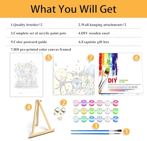 Click for More Images ?What You Will Get?1 framed painting canvas, 1 wooden Easel, 1 set of acrylic paint, 2 high-quality brushes, 1 color postcard guide, 1 paper copy of numbered canvas for reference, 1 sets wall hanging attachments;?Easy to...