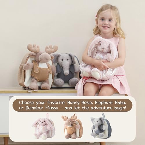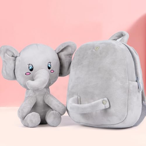 Click for More Images GREAT GIFT IDEA:Super soft toddler backpack with cute elephant toys can be perfect gifts for girls as a birthday gift,kindergarten entrance gift,school backpack,travel/picnic stuffed animal backpack.Sweet gift for various...