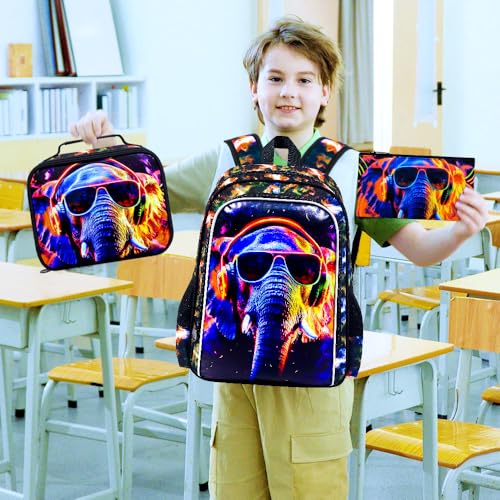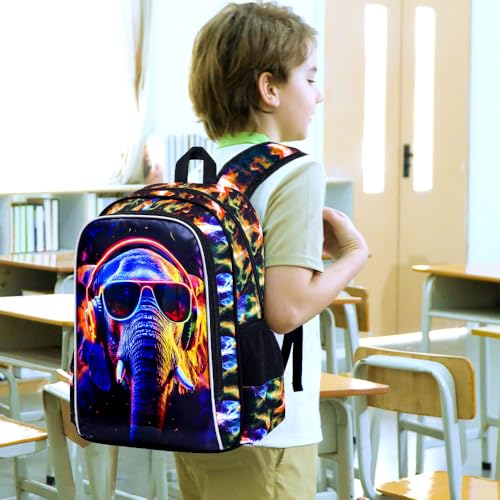 Click for More Images Novel design: Unique UV printing technology increases the texture and layer of the boys backpack, gorgeous but not fading, cool sunglasses elephant shape makes you a big star of the school.Three-piece Backpack for Boys:...