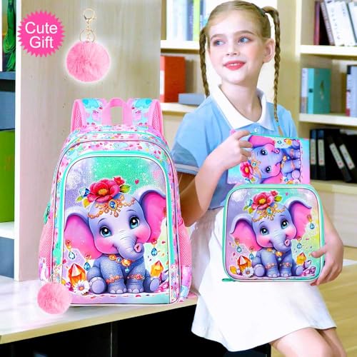 Click for More Images Unique Backpack for Girls: This elephant backpack is paired with a new upgraded printing process, cute elephant adorned with sparkling diamonds and flowers, bright diamond style makes you stand out from the crowd.Rich Girls...