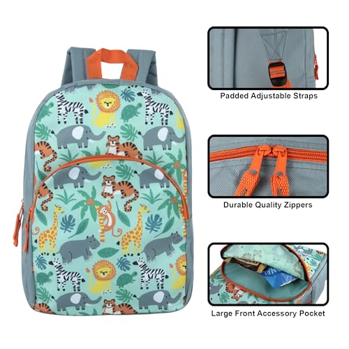 Click for More Images JUNGLE ANIMALS BACKPACK: Have a roaring great time with this jungle animals bookbag for kids! It features lions, tigers, elephants, zebras, & elephants, oh my!DIMENSIONS: 15” H x 11” W x 5” D – the perfect book bag;...