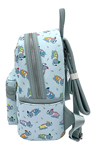 Click for More Images Dumbo the Flying Elephant is featured on this light grayish blue backpackThe zippers and straps are a slightly darker gray, giving it a two-toned look ITrue to the attraction, the vehicles have different-colored seats and...