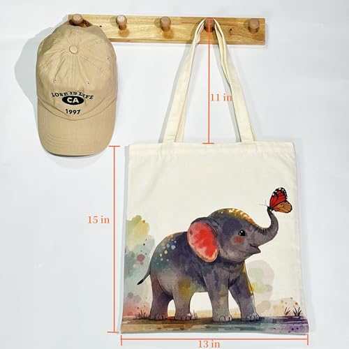 Click for More Images ? Artistic Design: Features elephant patterns on beige 12oz canvas, each pattern uniquely painted for a cute & chic aesthetic. Note: Print at ONE side of this bag.? Spacious & Practical: 13"x15" dimensions fits laptops (up...