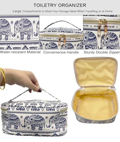 Click for More Images 3 Pieces Travel Makeup Bag:Including 3 different elephant cosmetic bags allowing you to decide the size of the makeup bag depending on the duration of the trip or size of items;If you need more makeup tools or cosmetics but...