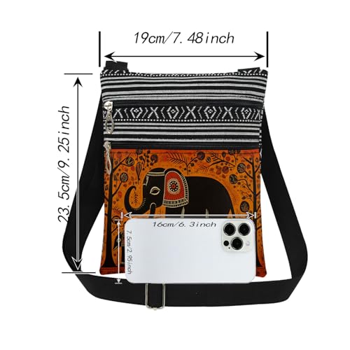 Click for More Images 1. [Material] The Ethnic Style Elephant Crossbody Bag is made of polyester fiber It's durable, lightweight, soft and easy to clean. Zippers are of high quality and work smoothly. The shoulder strap is made from tightly woven...
