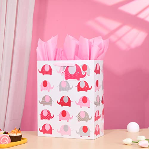 Click for More Images 15.7"H x 12.6"W x 5.7"D environmental paper bag.The extra large gift bag with 3 sheets of pink tissue paper.The Extra pink gift bag with ribbon handles and cute matching elephant tag on which you can write your best wish.The...