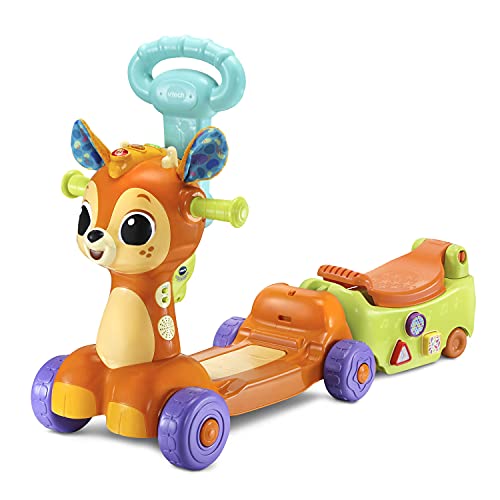 Click for More Images Transform the 4-in-1 fawn from a walker to a ride-on to a scooter with a detachable wagon kids can pull; sort three blocks into the wagon shape-sorterMotion sensor plays sounds and music as kids move the fawn, encouraging...