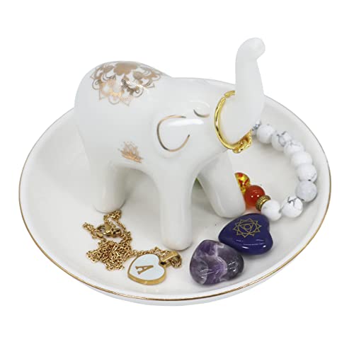 Click for More Images HIGH-QUALITY MATERIAL: The elephant trinket dish is made of premium ceramic and it has smooth glazed. The edge of dish is polished smooth & delicate and painted gold edging. It looks very exquisite.SIZE: The size of the...