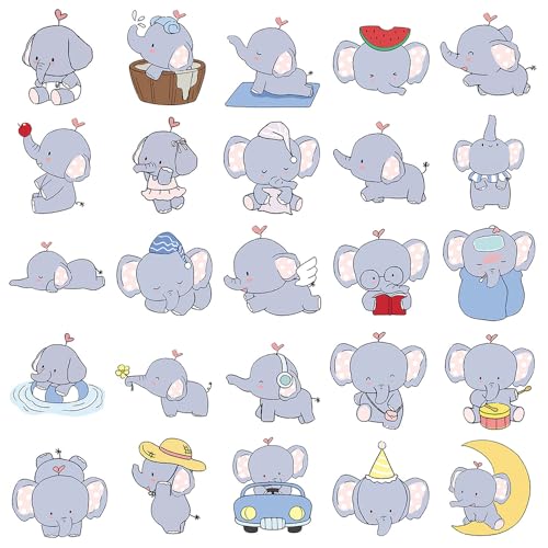 Click for More Images 50 Unique Elephant Designs -- No Repeats: This pack includes 50 different baby elephant stickers featuring rosy cheeks, heart accents, cozy bath scenes, wing poses, reading moments, and daily-life activities like drumming,...