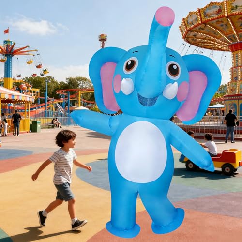 Click for More Images Inflatable Elephant Costume Adult: This fun and adorable blow up elephant costume for women men is made from premium, thickened polyester material, ensuring softness, comfort, and durability. All seams are securely...