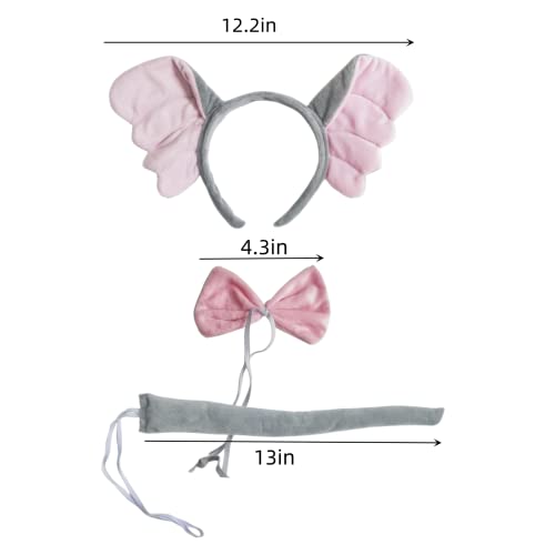 COCIDE Costume Accessory Set Ears Headband Tail Nose and Bow Tie Costume Accessories Set (Elephants)