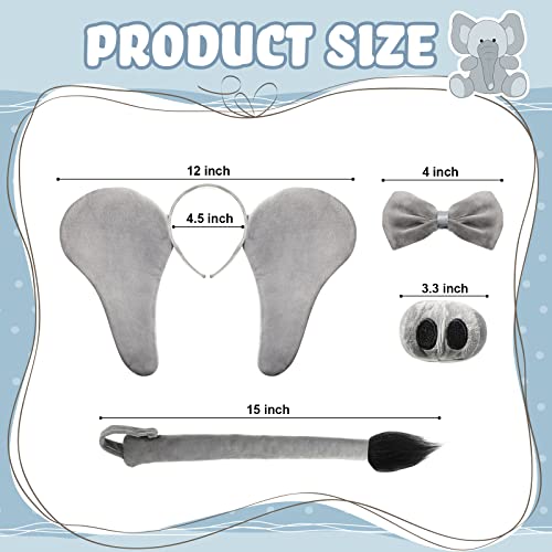 Click for More Images Elephant Fancy Set Costume Kit Accessories:Package includes Elephant ears headband, nose, tail and bow tie with a white elastic band.One size fits most - children to small adult.It's time to role-play: the Elephant costume...
