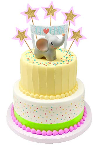 Make your party foods super elegant with these party decorations. Add Glam and Elegance to your party and table display food display. For parties and other special occasions. Includes 1 elephant cake topper, 1 oh baby banner and 5 Pink and Gold...