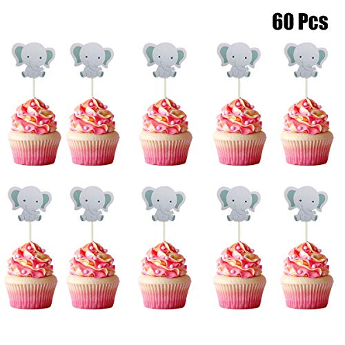 1 Package Include:60Pc elephant cupcake topper. Single product size, Heart diameter approx. 0.98 inch (2.5 cm), Tooth pick length approx. 2.36 inch (6 cm).double-sided printedQUALITY MATERIALS - Made of high quality paper ,attractive and durable,...