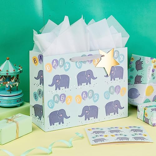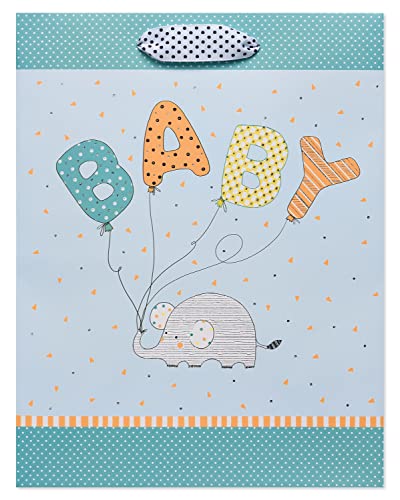 Click for More Images VALUE PACKAGE: Includes one Large gift bag, two sheets of gold tissue paper, and one coordinating card with an envelope that's perfect for baby showerBABY DESIGN: This celebratory large gift bag features adorable grey...