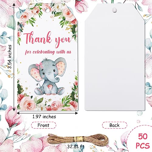 Click for More Images 50pcs Elephant Thank You Tags: This elephant themed party favors include 50pcs pink thank you for celebrating with us tags, and we also provide 32.81ft long sisal rope for hanging. Enough quantity for your party use or other...