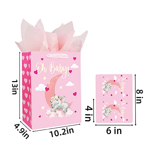 Click for More Images ??Size?:13"H x 10.2"W x 4.9"D environmental paper gift bag, 8"W x 6"H greeting card.??Value Package?:Includes one large gift bag, four sheets of pink tissue paper, and one greeting card.??Baby Girl Elephant Design?:Super...