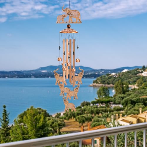 Click for More Images Unique Design: This wind chime consists of 2 elephants on the top, 6 small elephants on the bottom, 4 aluminum tubes, 1 S-shaped hook, 6 bells, and 1 metal cap. It is elegant and unique, making it a perfect choice for...