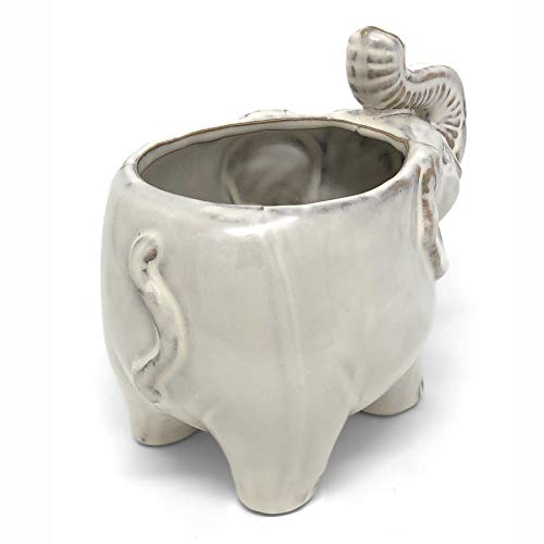 Click for More Images Ceramic cachepot in the shape of an elephantNeutral ivory wash glazeApproximately 7 x 4 x 5.5 inches (LxWxH); plant directly or insert up to a 3-inch liner potNo drainage hole; recommended for indoor use or in a protected...