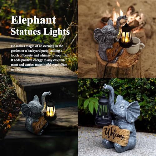 Click for More Images Solar Elephant Garden Statue:The mother elephant tenderly holds her baby with a loving,lifelike expression that oozes warmth and caring ambience.Day or night,this elephant statue decor will be a beautiful addition to your...
