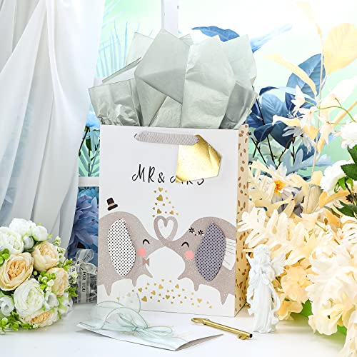 Click for More Images VALUE PACKAGE: Includes one Large gift bag, two sheets of grey tissue paper, and one coordinating card with an envelope that's perfect for birthday partyWEDDING DESIGN: This white celebratory large gift bag features "Mr.&...