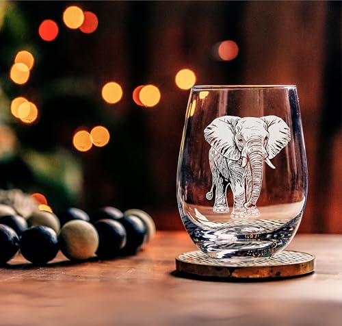 Click for More Images Unique Design: 18 oz wine glass featuring a hand drawn laser engraved elephant on the glass.Dishwasher Safe: These glasses are designed to withstand the rigors of dishwasher cleaning for easy maintenance.Versatile: Perfect...