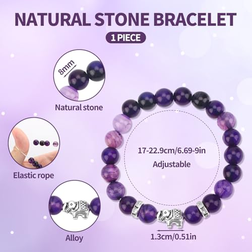 Click for More Images Product Content: You will receive one piece of amethyst bracelet, and comes with a inspirational card.Product Size: Diameter: 17cm/6.69in, the bracelet adopts an elastic design and is adjustable, suitable for most wrist...