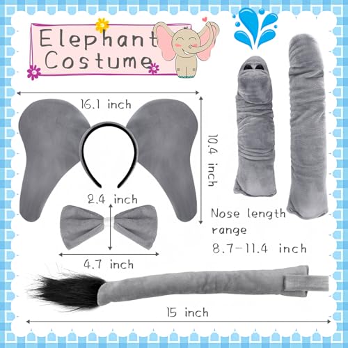 Click for More Images Fancy Elephant Costume Kit:You will get 1pc gray elephant ears headband,1pc long nose,1pc bow tie and 1pc tail,making you adorable and eye-catching at various partiesMaterial:These elephant costume accessories are made of...