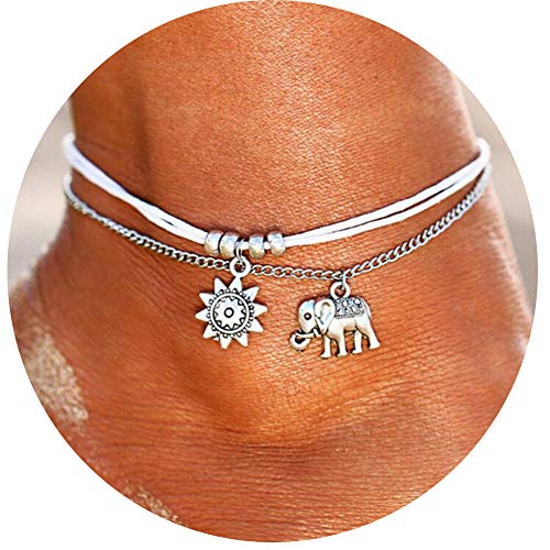 1 Pc Multi-layer Elephant Anklet Lucky Elephant Charm Anklet are Made of AlloyAdjustable Ankle Bracelet is Suitable for Women and Girls on Any Occasion Especially On Beach or...