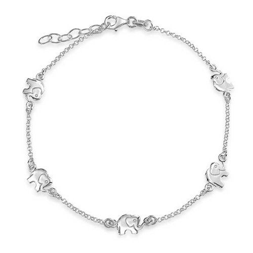 Elephants are thought to symbolize wisdom and strength, along with good luck. Our sterling silver ankle bracelet has five playful pachyderms with their trunks pointing up for good luck, that are strung together on a delicate rolo chain. Lucky...