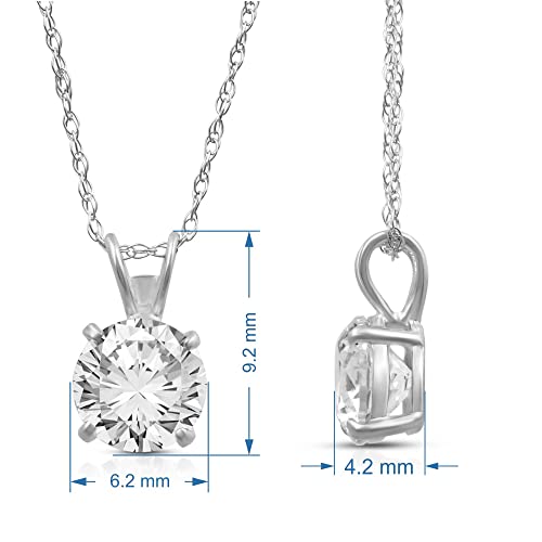 Click for More Images Solitaire pendant necklace featuring a sparkling 6.5 MM round cubic zirconia stone in a classic four-prong setting in 10K white gold dangled on 18 inch rope chainDimension - L:9.2 MM, W:6.2 MM, H:4.2 MMPackaging & Return –...