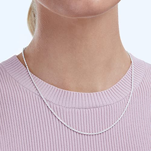 Click for More Images STYLE: Timeless sterling silver diamond cut rope chain necklace is 18 inches (45.7 cm) long; its surface reflects the light naturally and with ease, making it glisten whether you have it on during the day or at...