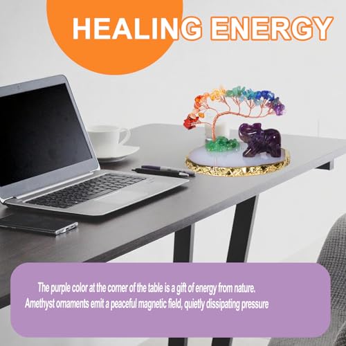 Click for More Images Unique Design: This gift set features a beautifully crafted amethyst elephant and a colorful gemstone tree, making it a visually stunning piece. The Chakra crystal tree has magical energy, providing energy for your room. It...