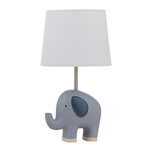 Click for More Images Custom designed white resin elephant lamp with gray ears and floral detailsSoft white lamp shade with gray trim adds the perfect finishing touchThis “grow with me” lamp can be enjoyed by your little one for years to...