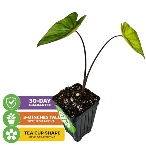 Click for More Images MATURE SIZE & CARE GUIDE: This Tea Cup Elephant Ear reaches heights of 4-6 feet and requires tropical conditions for optimal growth. Plant in well-draining soil and provide ample sunlight and water. Suitable for USDA...