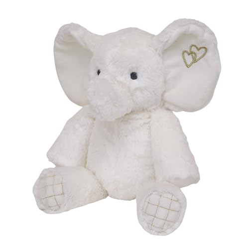 Click for More Images Marshmallow, the friendliest elephant is oh so soft and measures 12.5" in total lengthShe is made in a minky faux fur, has gold silhouette hearts embroidered on her ear and her paws are a pretty gold jacquard fabricShe is...