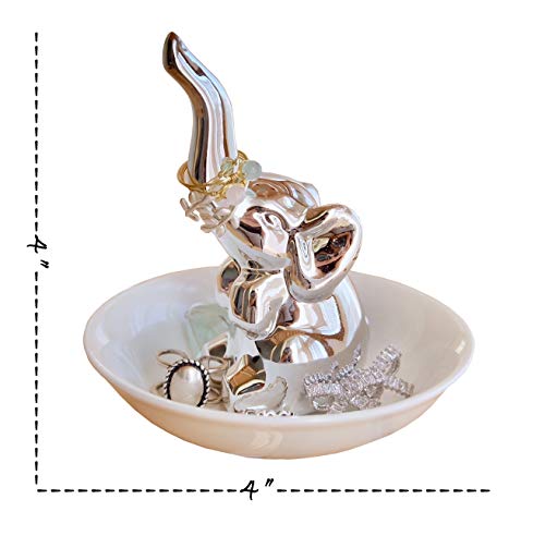 Click for More Images Lucky elephant jewelry tray with sliver electroplated.Crafted from great quality glazed ceramic.Perfectly sized for an interior accessory, this jewelry tray measures 4”L x 4”H.Please refer to the size picture!Put it in...