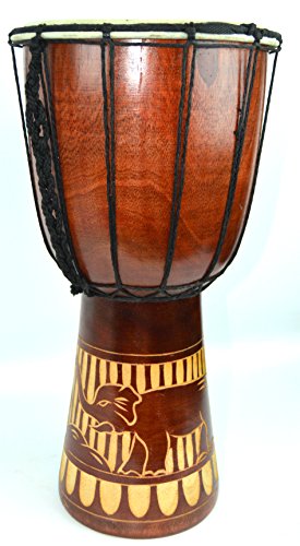 THIS AMAZING DRUM IS MADE OF ONE SOLID PIECE OF MAHOGANY WOO WITH PREMIUM QUALITY GOAT SKIN HEAD. ALL DRUMS ARE PROFESSIONALLY HAND-PRODUCED WITH A STRINGENT QUALITY CONTROL. EACH DJEMBE IS SPECIALLY CRAFTED WITH SOUND QUALITY AND PLAY-ABILITY IN...
