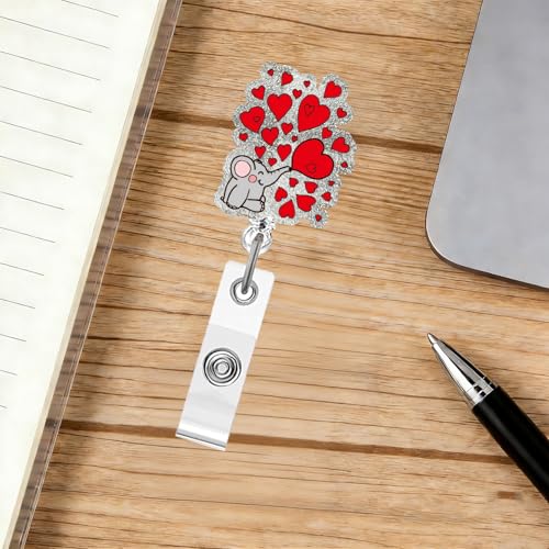 Click for More Images Valentine's Day Design: You will receive a Valentine's Day elephant badge reel with a unique design featuring a cute elephant surrounded by beautiful red hearts, making the badge scroll more in line with the romantic...