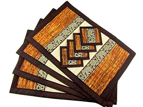 The magnificent elephant placemats for dining table set has an extraordinary design of Thai royal elephant. It was hand woven from eco-friendly natrural reed material. The set has a wide decorative rim of a shiny silk-blend fabric. The set...