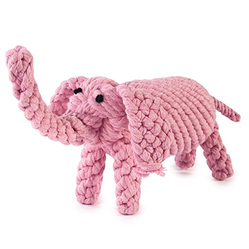 4" Blue Elephant Rope head animal woven cotton balls with plush animal faces that squeak dog toy. A great combination of durable long lasting rope and a noisemaking squeaker that dogs love. This toy is designed for small, medium and some large...