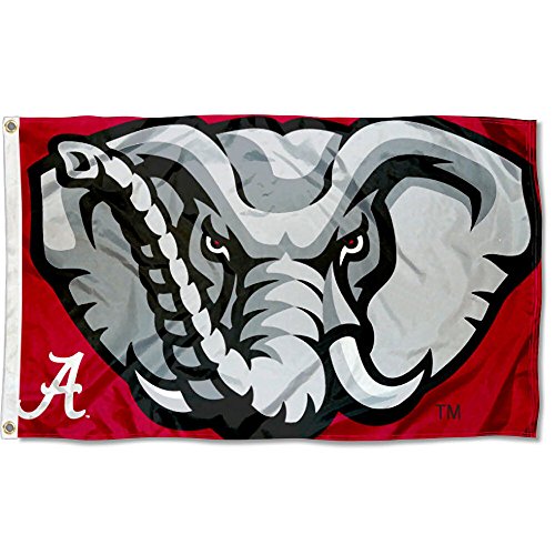Our Alabama Crimson Tide Elephant Head Flag Large 3x5 measures 3x5 feet in size, has quadruple-stitched fly ends, is made of 100% nylon, and has two metal grommets for attaching to your flagpole. The screen printed University of Alabama logos are...
