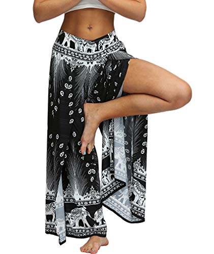 Click for More Images Bohemian print style,elastic waist back,high split side,wide leg,layerd,flowy,feels like silk,superlight,quick dryHigh waist design,full length,casual loose fit,exquisite trousers,high quality,breathable fabric,provides max...