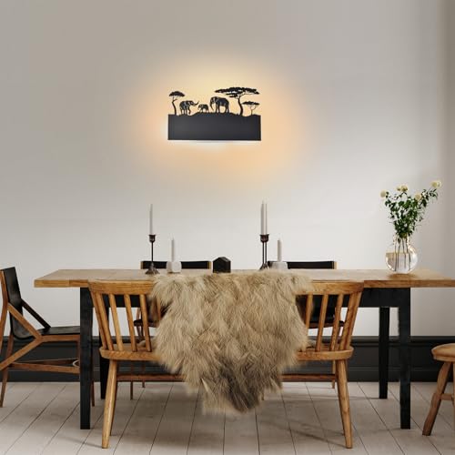 Click for More Images Farmhouse Animal Design:This LED wall sconce features a charming rustic design with elephant and forest patterns.The metal patterns are cut smoothly,wall sconce light creating a delightful visual experience that combines...